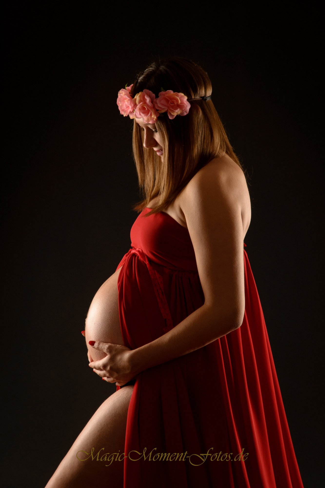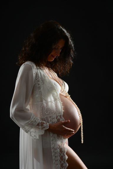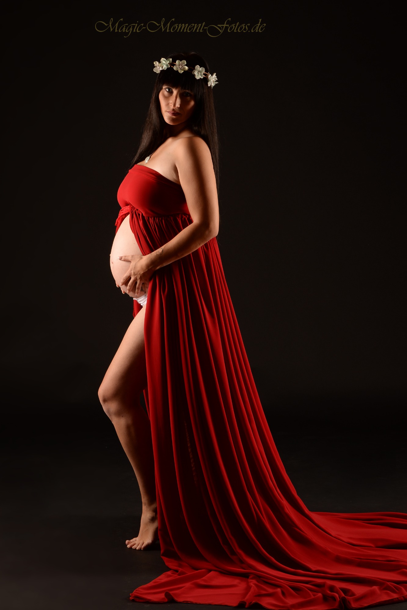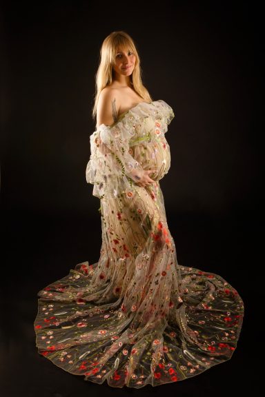 Im Studio befindet sich eine große Auswahl an Babybauch Kleidern, Haarschmuck etc. Sie können sich entspannt in einer Umkleide zurückziehen und probieren, was Ihnen gefällt.